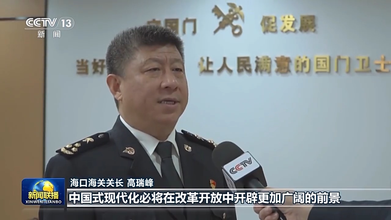 ??诤jP(guān)關(guān)長(zhǎng) 高瑞峰:習(xí)近平主席在新年賀詞中指出,中國(guó)式現(xiàn)代化必將在改革開(kāi)放中開(kāi)辟更加廣闊的前景。今年,海南自貿(mào)港將實(shí)現(xiàn)封關(guān)運(yùn)作。我們要始終沿著習(xí)近平總書(shū)記指引的方向前進(jìn),不斷深化海關(guān)監(jiān)管制度集成創(chuàng)新,努力把海南自由貿(mào)易港打造成為引領(lǐng)我國(guó)新時(shí)代對(duì)外開(kāi)放的重要門(mén)戶。