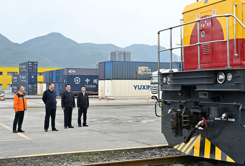 2024年4月22日,習(xí)近平總書記在重慶國際物流樞紐園區(qū)重慶鐵路集裝箱中心站考察。
