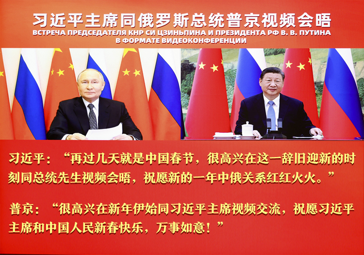 1月21日,中國國家主席習(xí)近平在北京同俄羅斯總統(tǒng)普京舉行視頻會晤,兩國元首互致新年祝福。習(xí)近平強(qiáng)調(diào),新的一年,我愿同總統(tǒng)先生一道,繼續(xù)引領(lǐng)中俄關(guān)系登高望遠(yuǎn),以中俄關(guān)系的穩(wěn)定性和堅韌性應(yīng)對外部環(huán)境的不確定性,共同促進(jìn)兩國發(fā)展振興,維護(hù)國際公平正義。