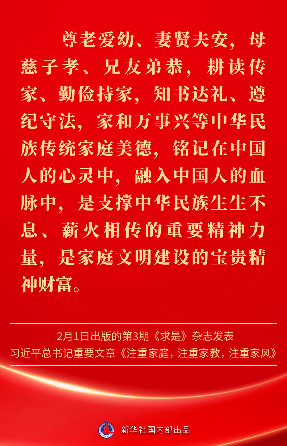 萬家團圓共慶新春佳節(jié)之際,2月1日出版的第3期《求是》雜志發(fā)表習近平總書記重要文章《注重家庭,注重家教,注重家風》。為什么要注重家庭、家教、家風?如何做好家庭文明建設?習近平總書記這樣闡述——