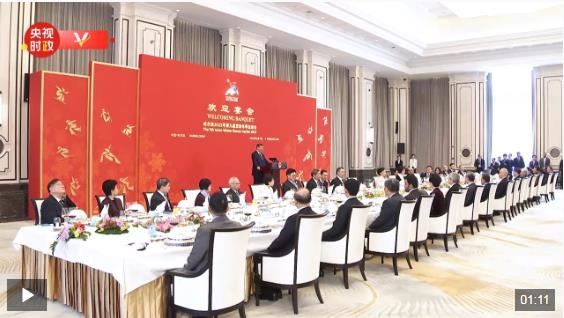 2月7日中午,國家主席習近平和夫人彭麗媛在黑龍江省哈爾濱市太陽島賓館舉行宴會,歡迎來華出席哈爾濱第九屆亞洲冬季運動會開幕式的國際貴賓。