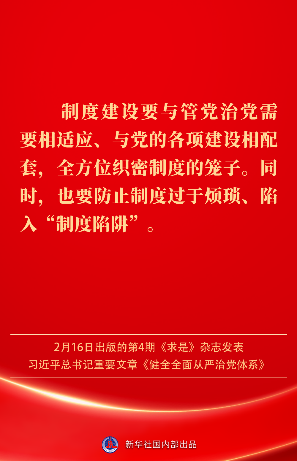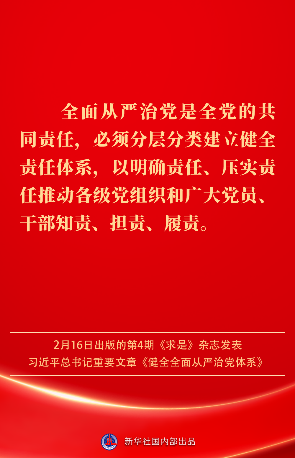 2月16日出版的第4期《求是》雜志發(fā)表習(xí)近平總書(shū)記重要文章《健全全面從嚴(yán)治黨體系》。如何進(jìn)一步健全要素齊全、功能完備、科學(xué)規(guī)范、運(yùn)行高效的全面從嚴(yán)治黨體系?習(xí)近平總書(shū)記闡明要旨——