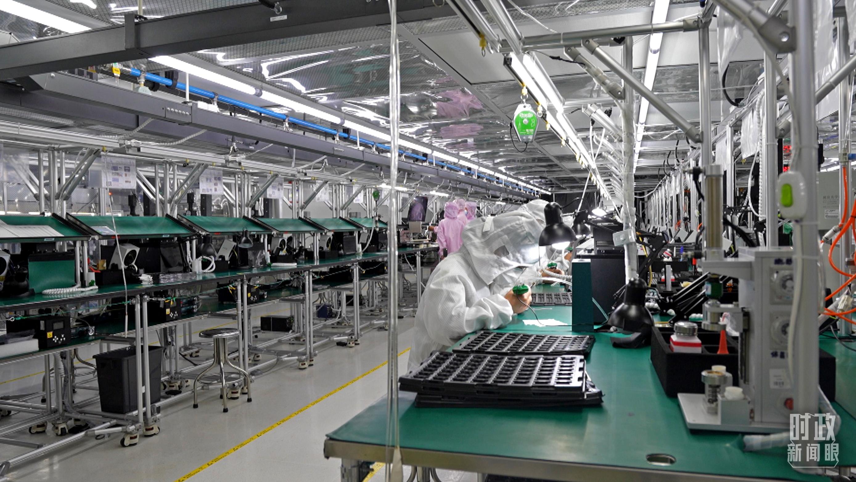 四川省宜賓市極米光電有限公司的無塵車間光機(jī)組裝線。(總臺(tái)央視記者范學(xué)禹拍攝)