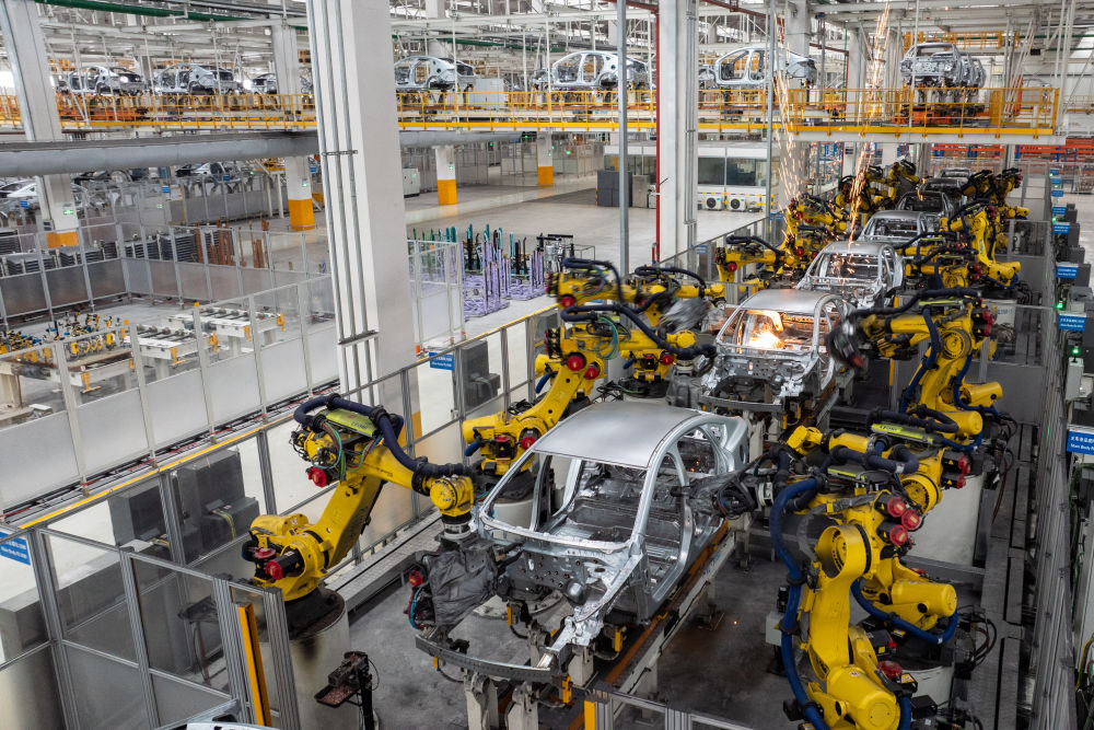 這是2024年3月21日在比亞迪長沙雨花工廠拍攝的自動化生產(chǎn)線。