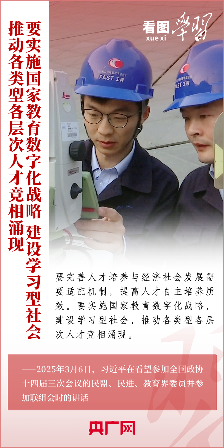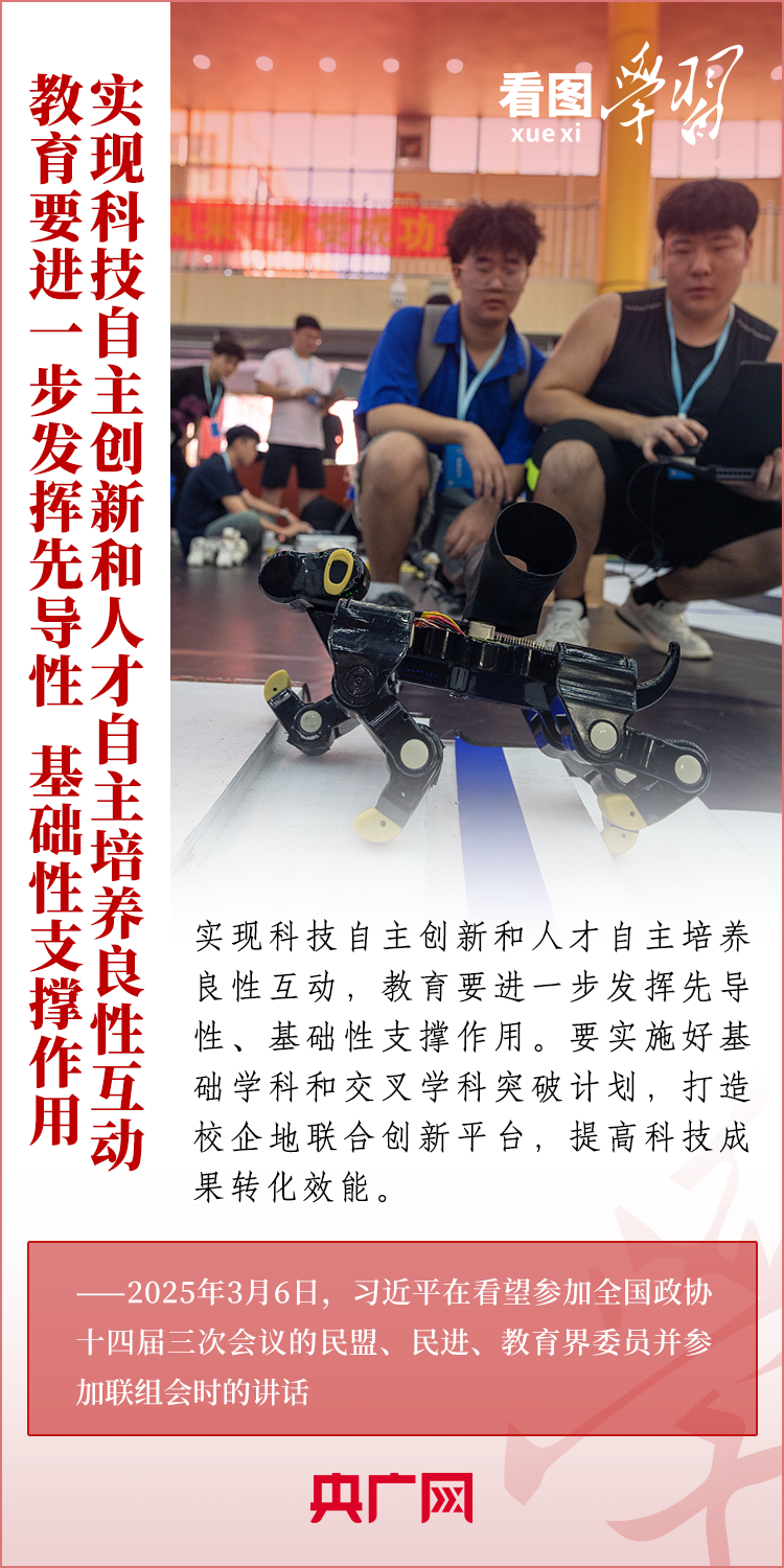 “建設(shè)教育強(qiáng)國、科技強(qiáng)國、人才強(qiáng)國,是全黨全社會的共同責(zé)任?!?月6日,習(xí)近平總書記在看望參加全國政協(xié)十四屆三次會議的民盟、民進(jìn)、教育界委員并參加聯(lián)組會時發(fā)表重要講話??倳浘妥龊媒逃?、科技、人才工作作出深刻闡釋,強(qiáng)調(diào)必須深刻把握中國式現(xiàn)代化對教育、科技、人才的需求,強(qiáng)化教育對科技和人才的支撐作用,進(jìn)一步形成人才輩出、人盡其才、才盡其用的生動局面。一起來學(xué)習(xí)!