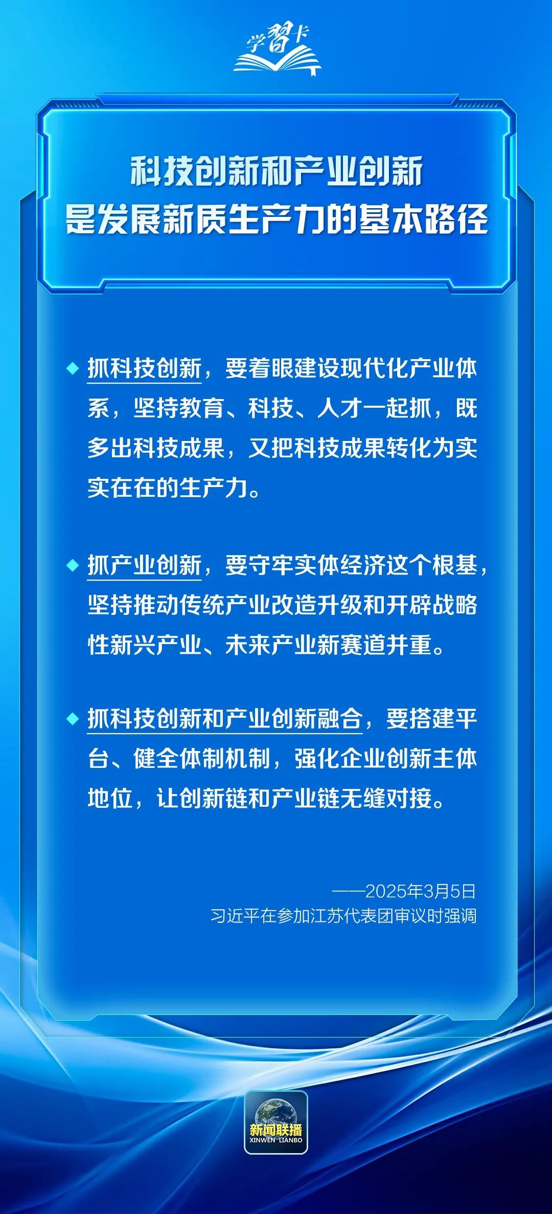 2025年全國(guó)兩會(huì)期間,習(xí)近平總書記參加團(tuán)組審議討論時(shí),多次提到科技創(chuàng)新這一關(guān)鍵命題,強(qiáng)調(diào)“科技創(chuàng)新和產(chǎn)業(yè)創(chuàng)新,是發(fā)展新質(zhì)生產(chǎn)力的基本路徑”。一起學(xué)習(xí)↓