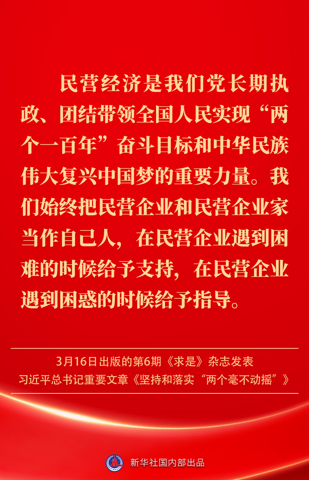 3月16日出版的第6期《求是》雜志發(fā)表習(xí)近平總書記重要文章《堅(jiān)持和落實(shí)“兩個(gè)毫不動(dòng)搖”》。這是習(xí)近平總書記2013年11月至2025年2月期間有關(guān)重要論述的節(jié)錄。如何認(rèn)識“兩個(gè)毫不動(dòng)搖”?公有制經(jīng)濟(jì)和非公有制經(jīng)濟(jì)是怎樣的關(guān)系?習(xí)近平總書記這樣闡述——