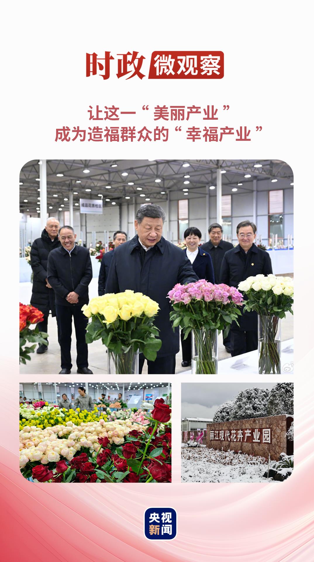 3月19日下午,習近平總書記來到這里考察調研。當?shù)卮迕窀嬖V總書記,在這里工作,一個月收入4000多元,旺季可達7000多元,“種花這個工作干得特別開心”??倳浉吲d地說:“你們這個事業(yè)搞得很興旺,符合現(xiàn)代農業(yè)發(fā)展方向。祝你們的生活像花兒一樣美!”