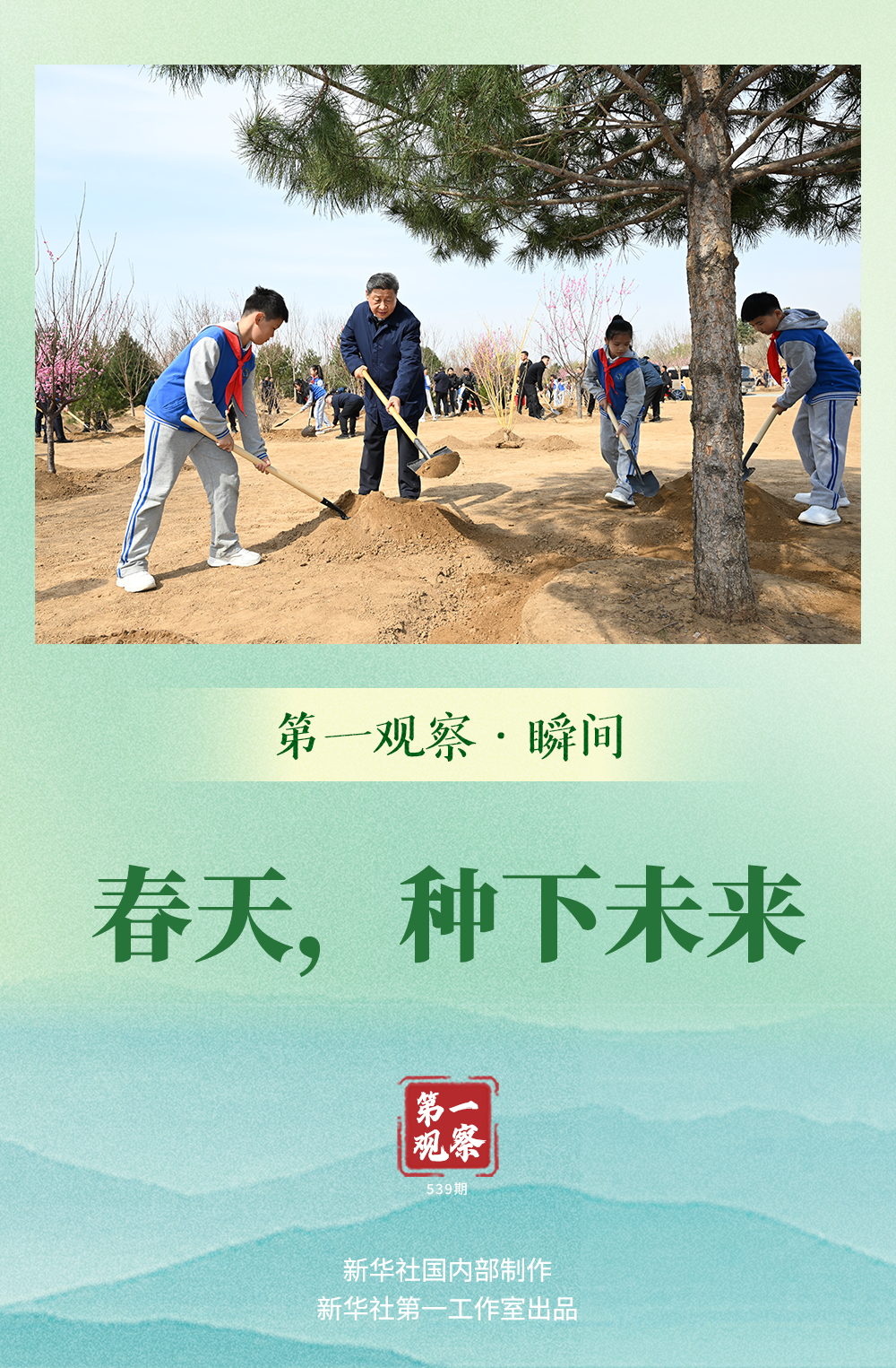 新華社記者的鏡頭記錄下這樣的溫暖瞬間:總書記和少先隊(duì)員們一起鏟土造坑、培土圍堰、提水澆灌。明媚春光下,一株株苗木錯(cuò)落有致,鮮艷的紅領(lǐng)巾映襯著可愛的小臉蛋,一派熱烈勞動(dòng)場(chǎng)景。