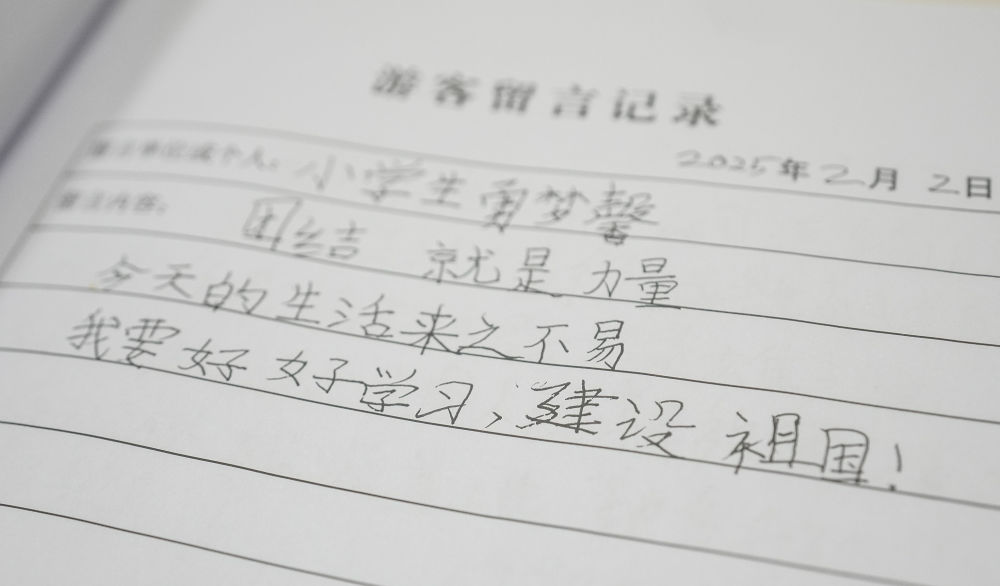 2025年4月1日,錦州市一名小學生在參觀遼寧省錦州市遼沈戰(zhàn)役紀念館后,在留言簿上留下感想