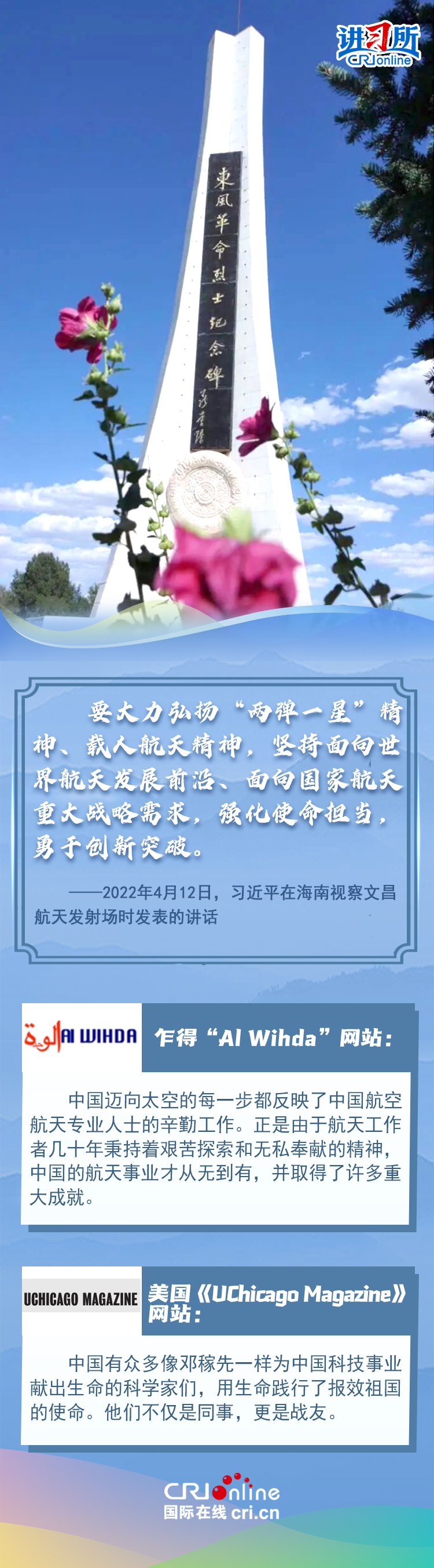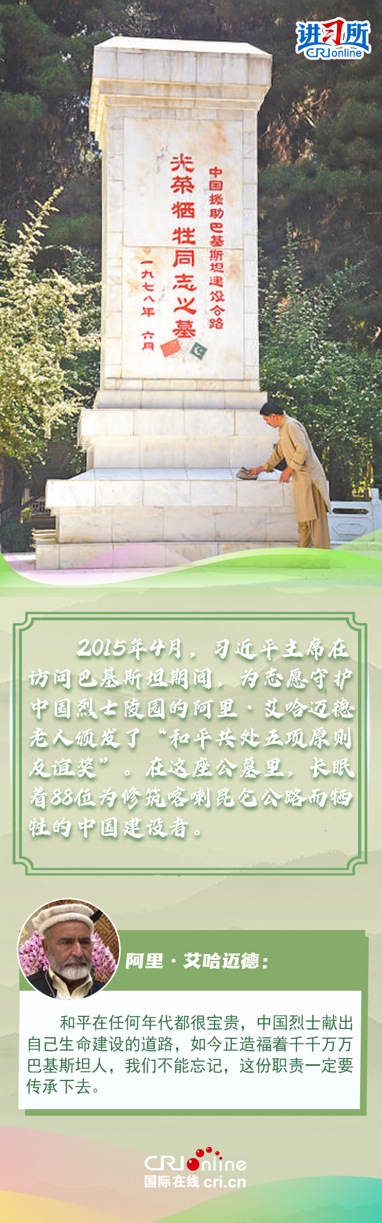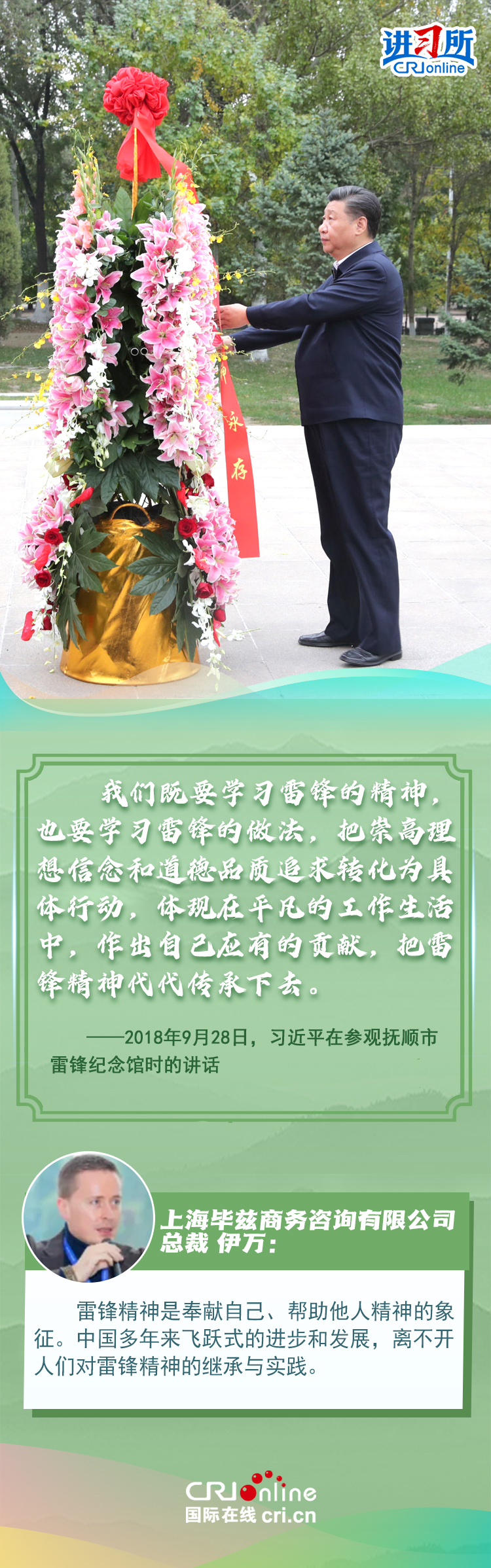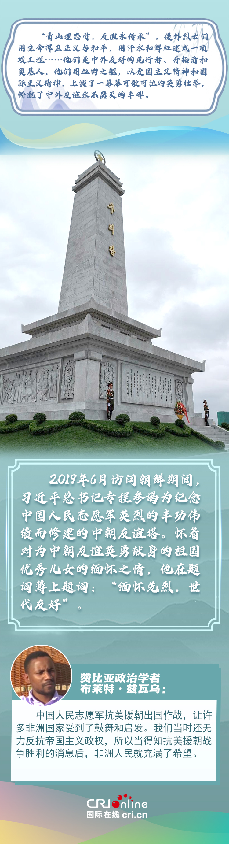 新時代以來,從設(shè)立烈士紀念日到出臺英雄烈士保護法,再到加強烈士紀念設(shè)施保護,中國崇尚英雄、學(xué)習(xí)英雄的社會風(fēng)尚贏得國際社會贊譽。在國際人士眼中,中國多年來飛躍式的進步和發(fā)展,離不開人們對先輩意志的繼承與實踐。