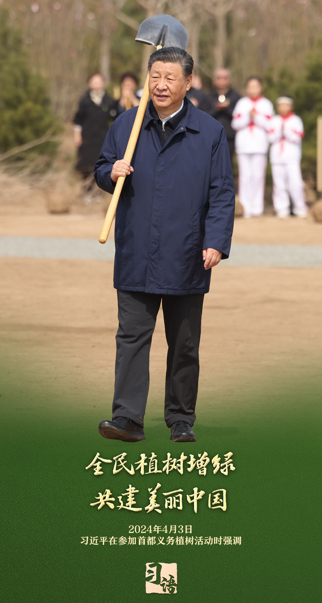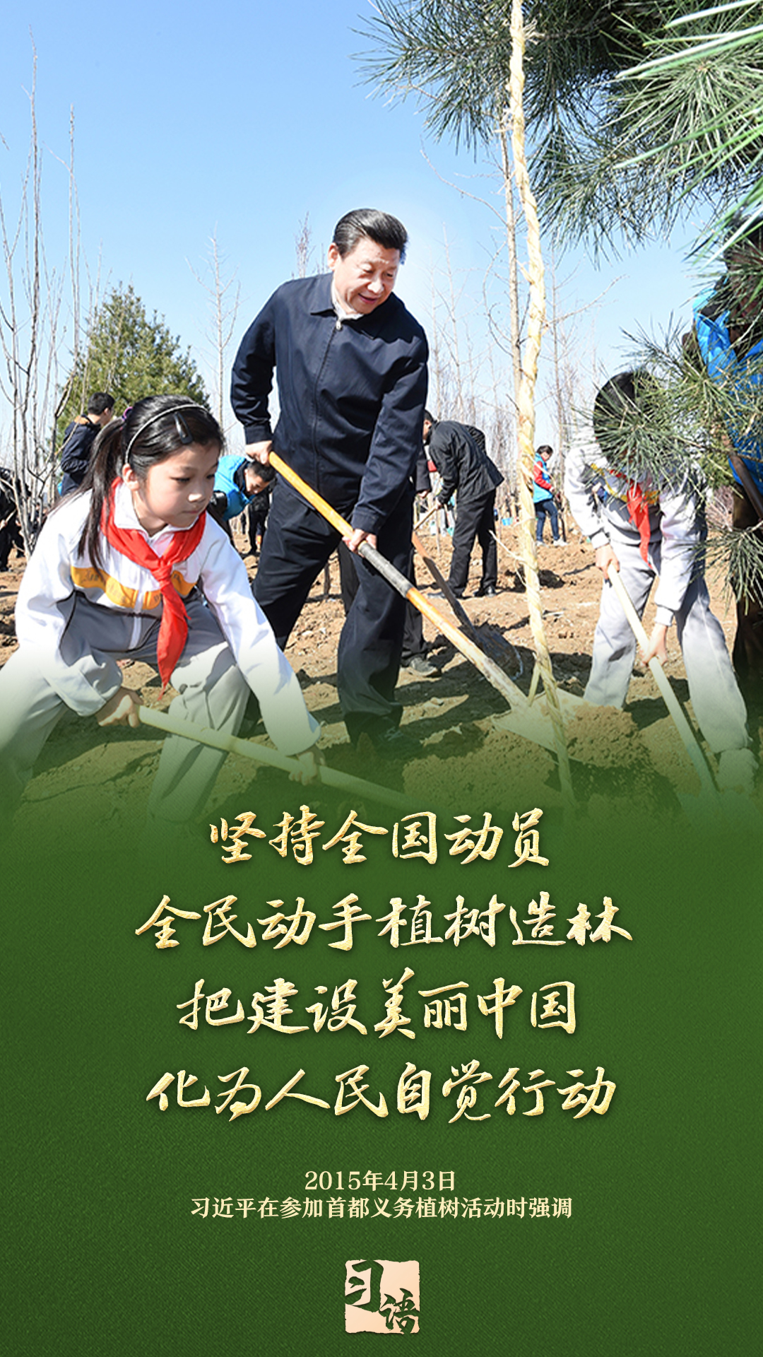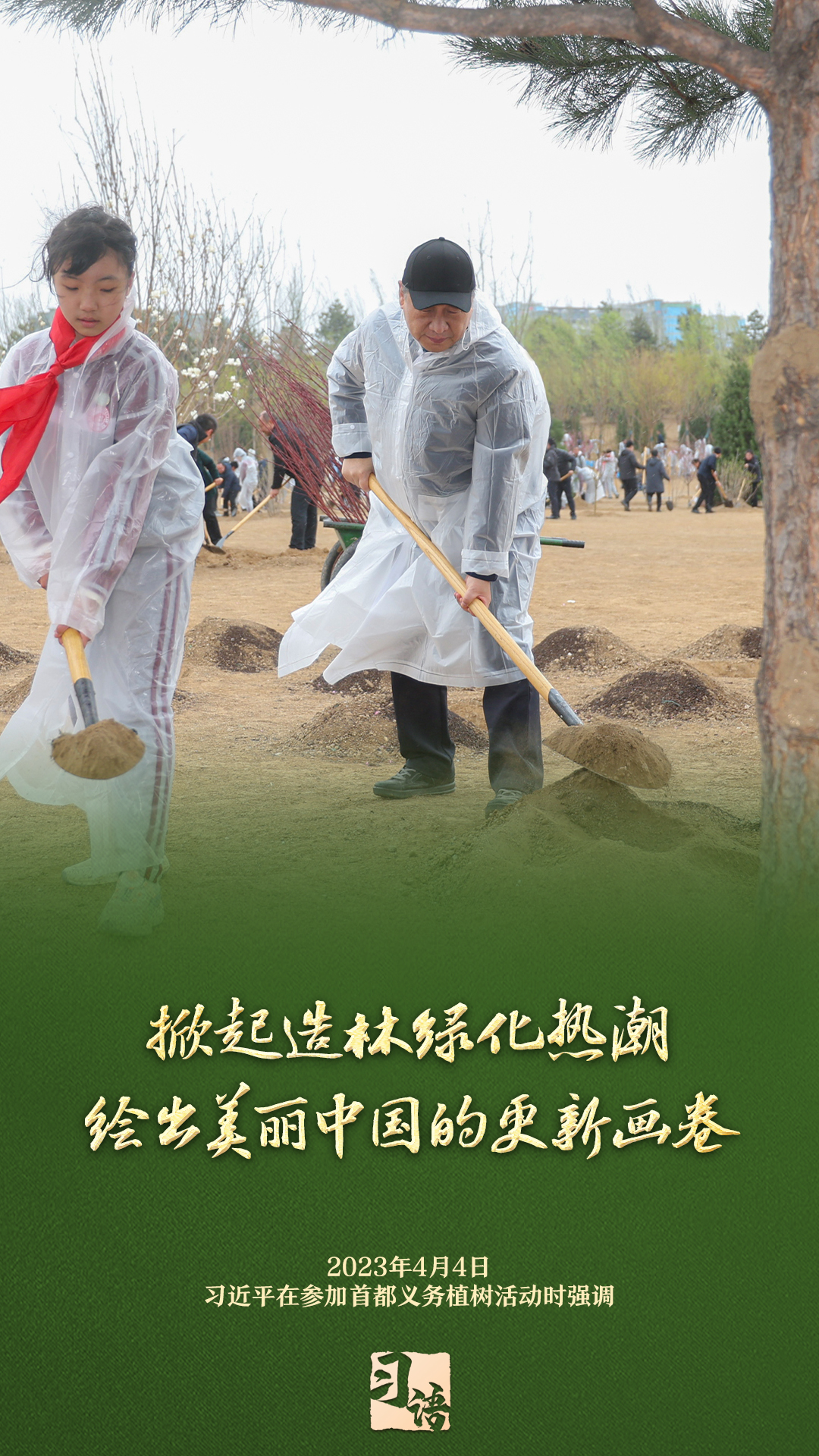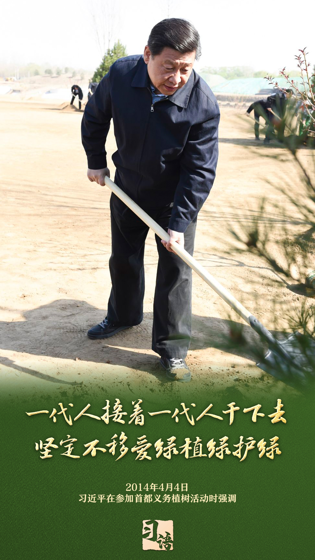 “植樹造林是一件很有意義的事情,是一項(xiàng)功在當(dāng)代、利在千秋的崇高事業(yè),要一以貫之、持續(xù)做下去?!弊?013年以來的13個(gè)春天里,無論晴雨,習(xí)近平總書記都會(huì)拿起鐵鍬,與干部群眾一起參加首都義務(wù)植樹活動(dòng)。鏟土造坑、培土圍堰、提水澆灌,總書記身體力行種下綠色的希望,對擴(kuò)綠興綠護(hù)綠、建設(shè)美麗中國提出明確要求。一起學(xué)習(xí)。