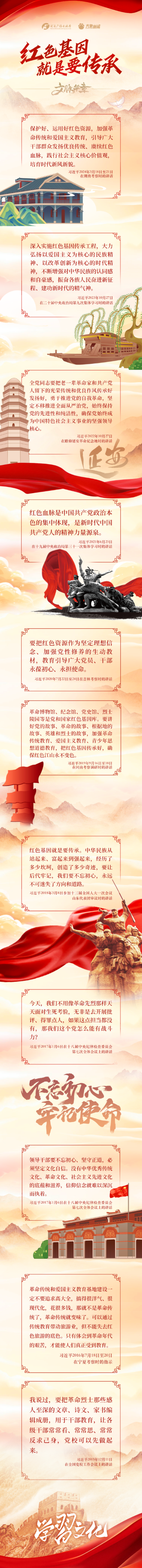 習(xí)近平總書(shū)記高度重視紅色基因傳承,發(fā)表了一系列重要講話(huà),引導(dǎo)我們賡續(xù)紅色血脈,激發(fā)愛(ài)國(guó)熱情,振奮民族精神。我們一起學(xué)習(xí)。