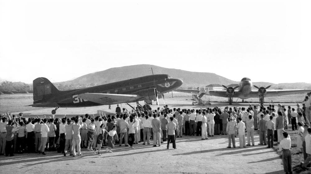1956年4月24日,從中國廣州經(jīng)南寧至越南河內(nèi)的民用航線正式通航。這是首航飛機準(zhǔn)備起飛。