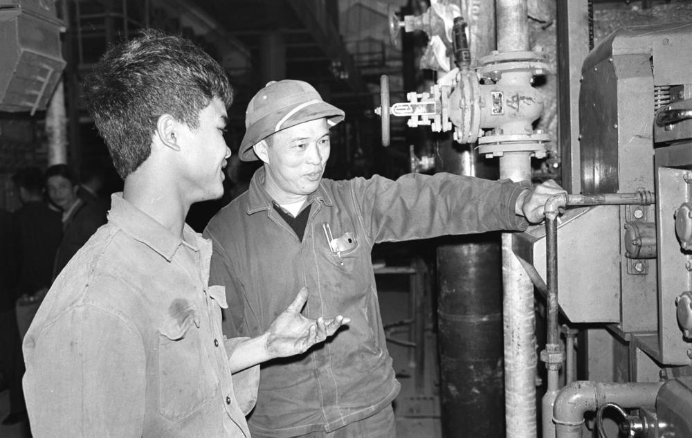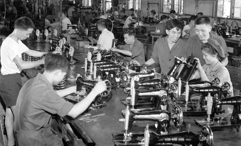1970年,越南實習(xí)生在上海東方紅縫紉機廠學(xué)習(xí)裝配技術(shù)。