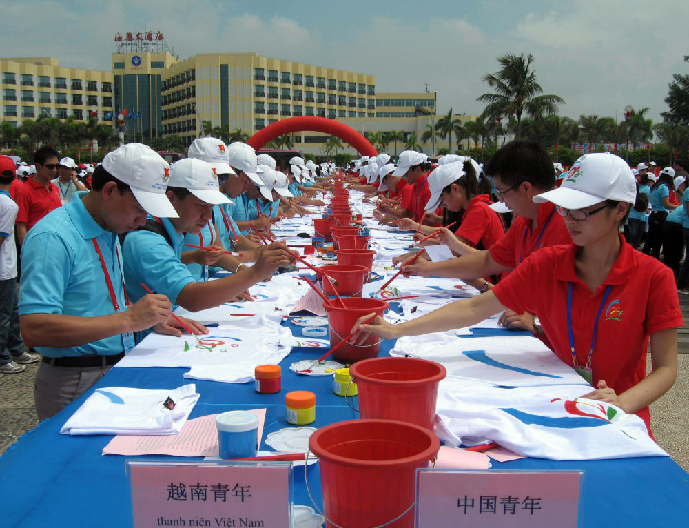 2010年8月27日,中越青年在廣西北海市海濱公園參加“用友誼共繪美好未來”中越千名青年大型彩繪活動。