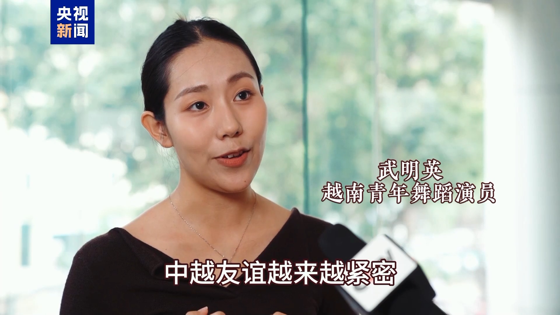 武明英 越南青年舞蹈演員:中越友誼越來越緊密。青年的留學(xué)生們或者是中國朋友來到越南,能看到我們?cè)侥系乃囆g(shù)或者是我們的文化。