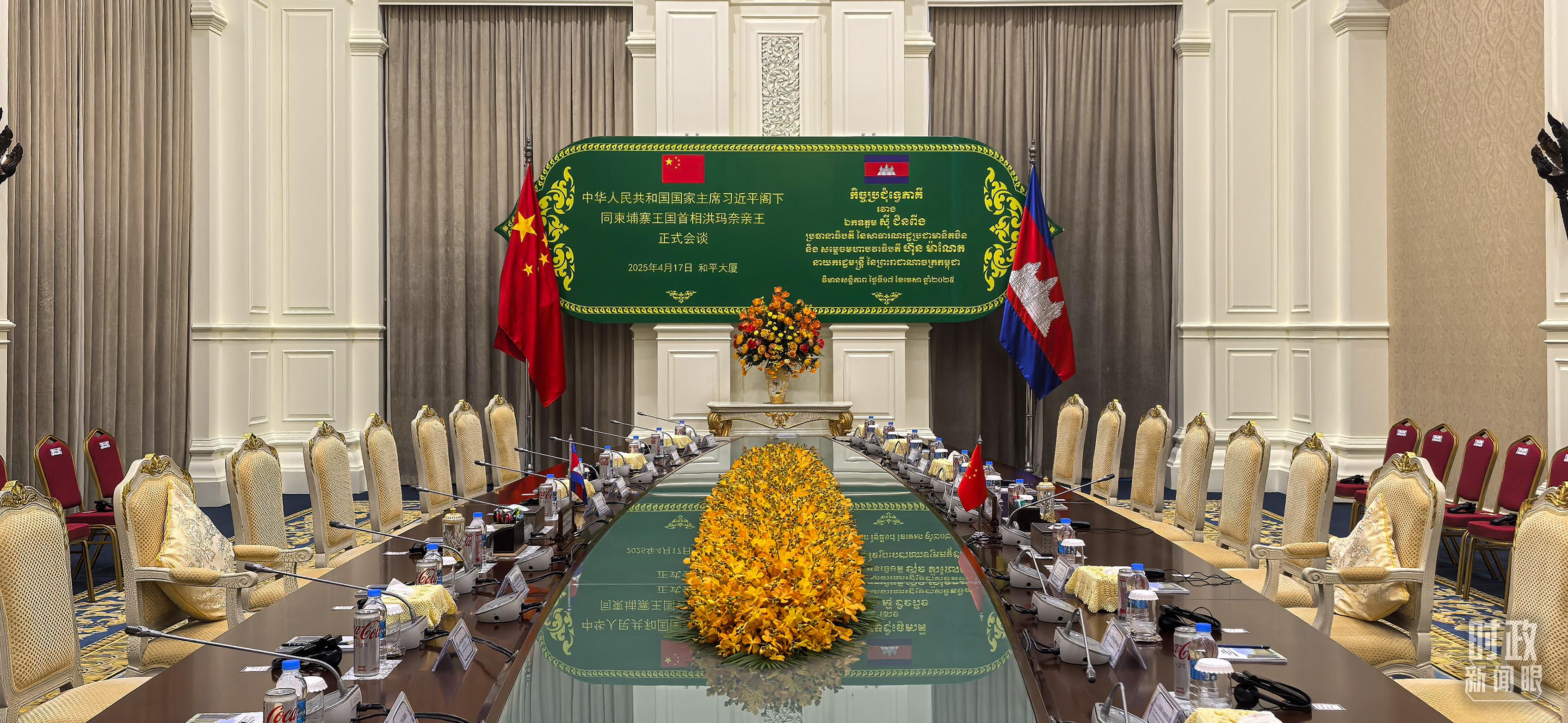 金邊和平大廈,習(xí)主席同洪森、洪瑪奈的會(huì)見會(huì)談在這里舉行。(總臺(tái)央視記者范一鳴拍攝)