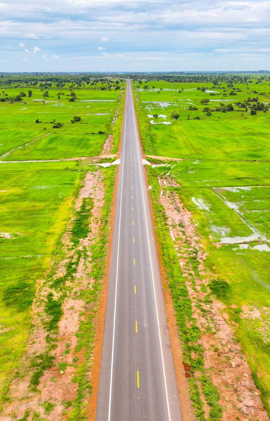 這是2024年7月14日在柬埔寨特本克蒙省拍攝的71C號(hào)國家公路(無人機(jī)照片)。新華社發(fā)(尼多拉攝)