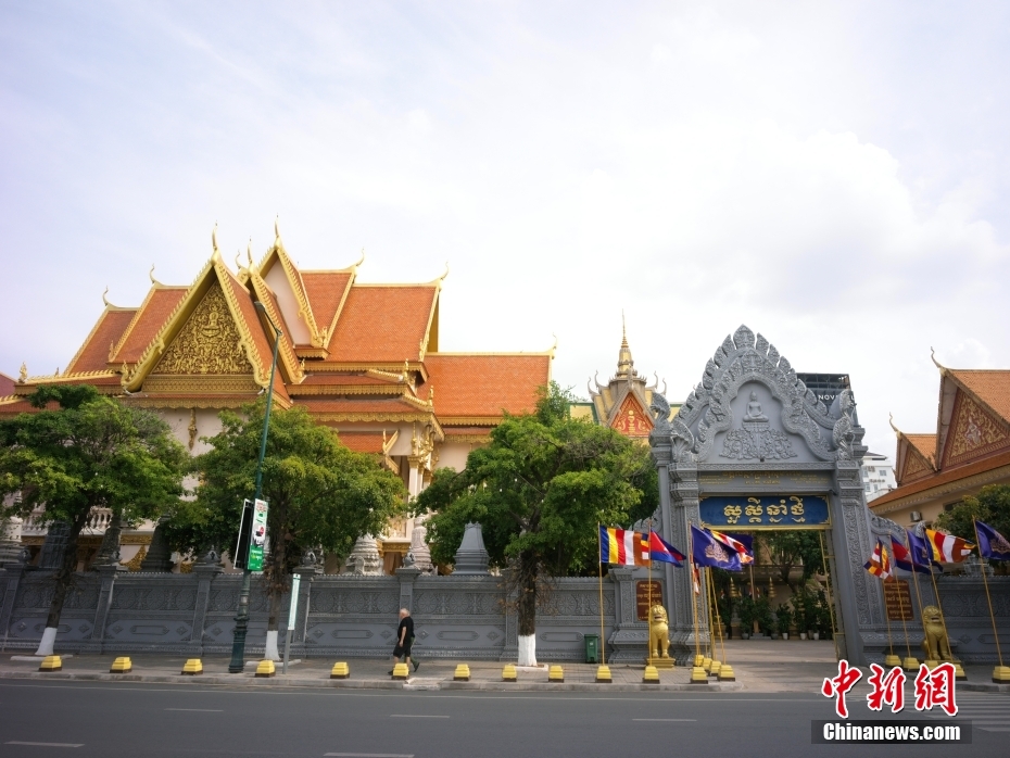 金邊是柬埔寨王國的首都,坐落在湄公河、洞里薩河的交匯處。圖為當?shù)貢r間4月17日拍攝的金邊蘭卡寺。中新社記者 盛佳鵬 攝