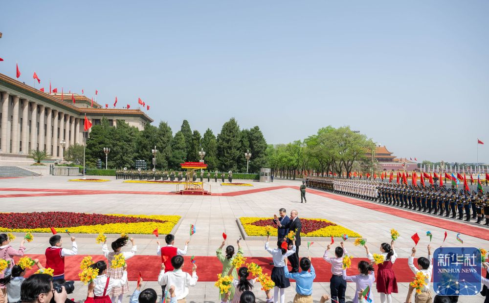 4月23日,國家主席習(xí)近平在北京同來華進行國事訪問的阿塞拜疆總統(tǒng)阿利耶夫舉行會談。