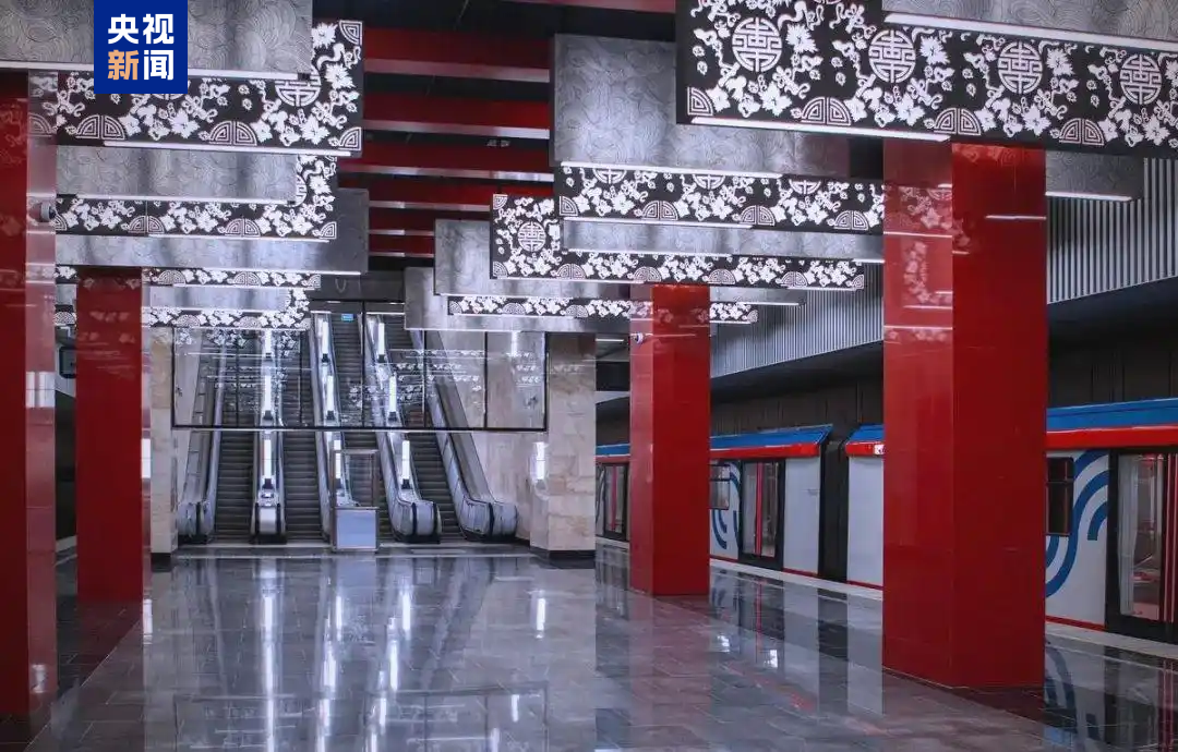 △莫斯科地鐵米丘林大街站由中企中標(biāo)建設(shè),地鐵站有紅色立柱、團壽紋、祥云等中國元素裝飾。