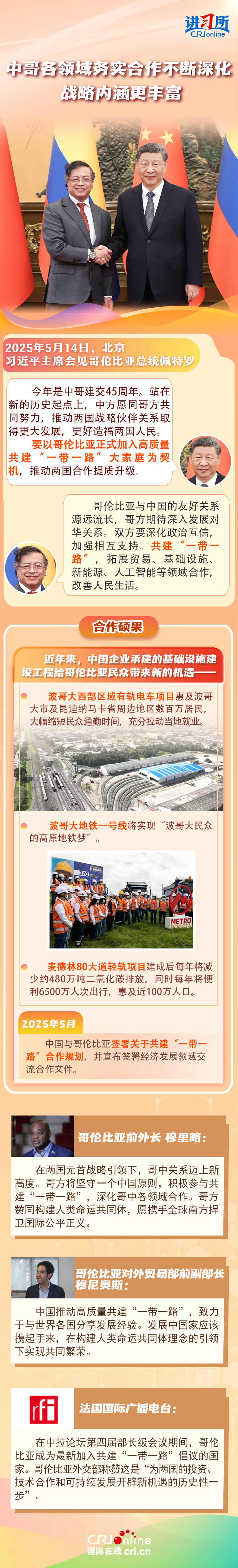 習(xí)近平主席在這三場雙邊外事活動中,均提到了共建“一帶一路”倡議:“深化‘一帶一路’倡議同巴西發(fā)展戰(zhàn)略有效對接”“要以哥倫比亞正式加入高質(zhì)量共建‘一帶一路’大家庭為契機(jī),推動兩國合作提質(zhì)升級”“雙方要落實好共建‘一帶一路’合作規(guī)劃”……10多年來,在習(xí)近平主席親自擘畫和推動下,共建“一帶一路”從中國倡議走向國際實踐,取得了實打?qū)崱⒊恋榈榈某删汀?/p>