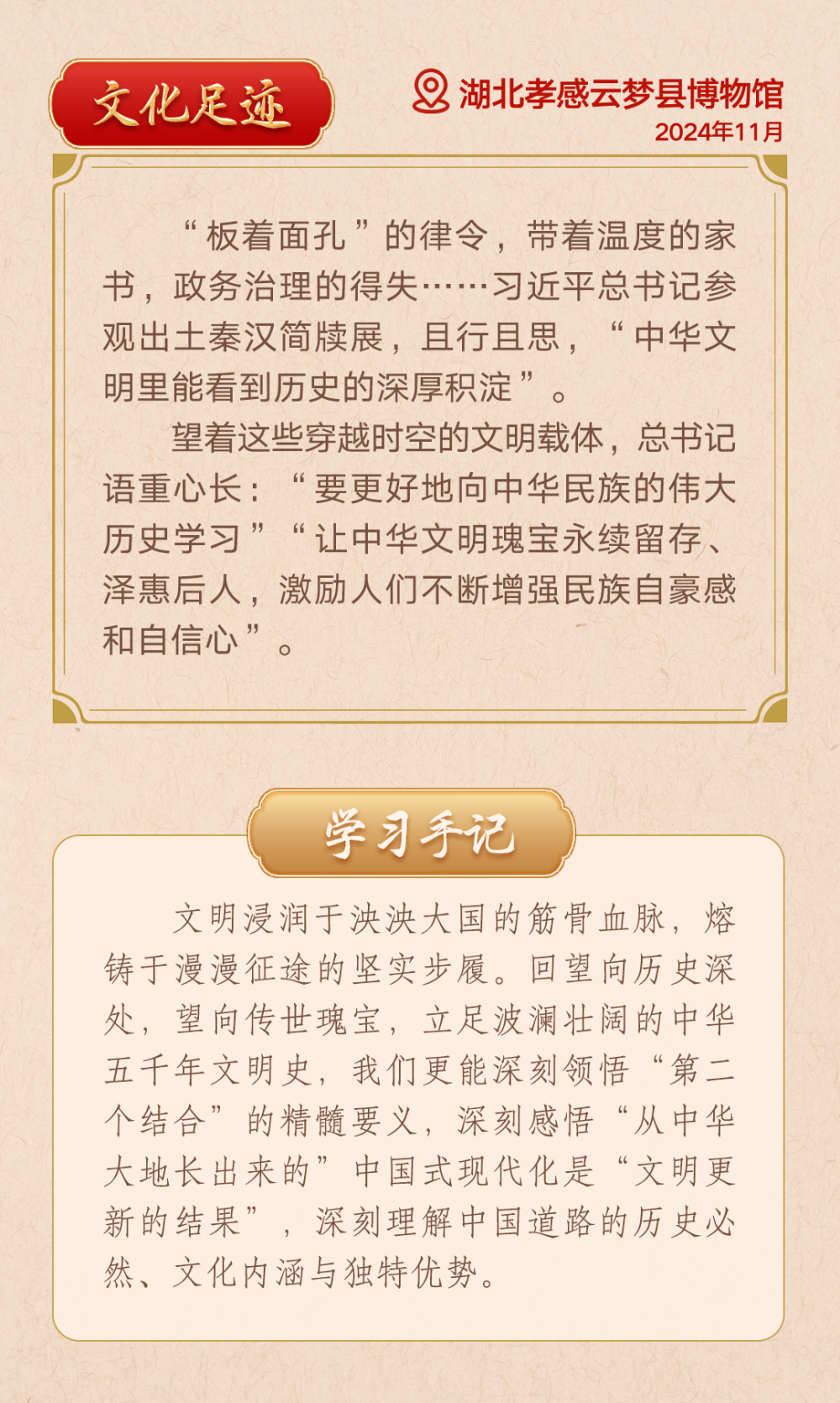 讓我們沿著習(xí)近平總書記近兩年來的文化足跡,感悟中華文明突出特性,堅(jiān)定文化自信自強(qiáng)。
