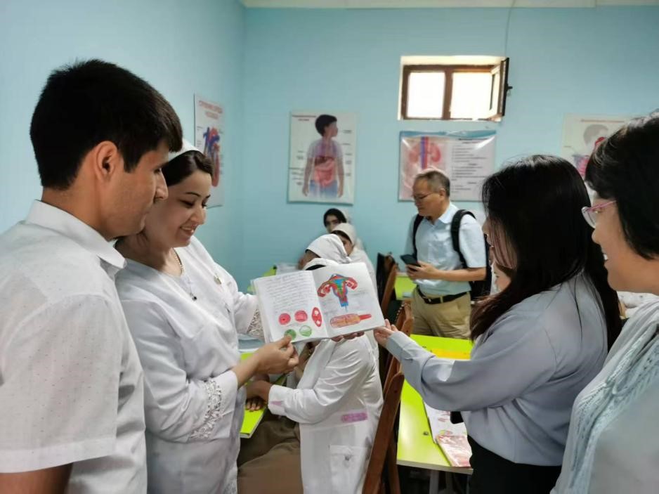 中方專家赴塔吉克斯坦基層醫(yī)院培訓(xùn)鄉(xiāng)村醫(yī)生。中塔中醫(yī)藥中心 供圖
