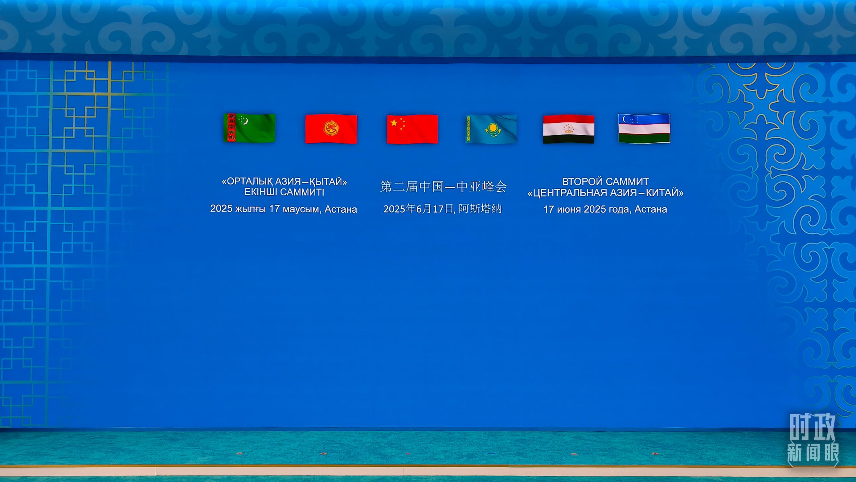 當(dāng)?shù)貢r間6月17日下午,阿斯塔納獨立宮前,各國旗幟迎風(fēng)飄揚(yáng)。習(xí)近平主席和中亞五國元首步入會場,集體合影后,六國元首圍坐圓桌前,共同擘畫中國—中亞機(jī)制發(fā)展的新藍(lán)圖。