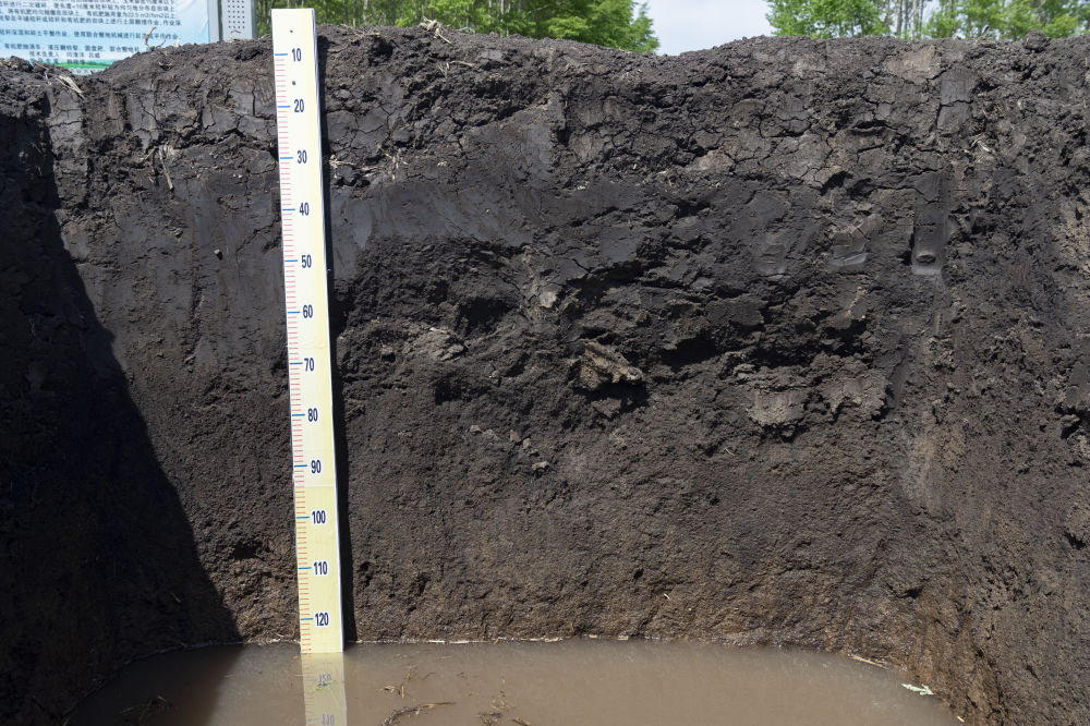 黑龍江省海倫市前進(jìn)鎮(zhèn)自新村農(nóng)業(yè)科技示范基地內(nèi)一處用來觀測黑土層厚度的土壤剖面(2022年5月23日攝)。