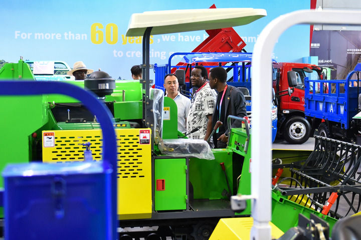 2025年6月14日,觀眾在長沙國際會展中心參觀農(nóng)機(jī)設(shè)備。6月12日至15日,第四屆中國—非洲經(jīng)貿(mào)博覽會在湖南長沙舉行。新華社記者 陳振海 攝
