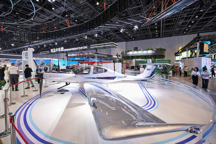 這是2025年5月22日在第四屆中國-中東歐國家博覽會暨國際消費品博覽會“數(shù)智中東歐”展區(qū)拍攝的輕型飛機(jī)。5月22日至25日,第四屆中國-中東歐國家博覽會暨國際消費品博覽會在浙江寧波舉行。新華社記者 江漢 攝