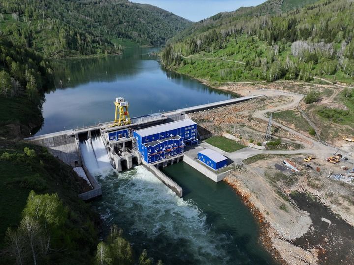 這是2025年5月8日在哈薩克斯坦東哈州拍攝的圖爾古孫水電站(無人機(jī)照片)。新華社記者 李任滋 攝