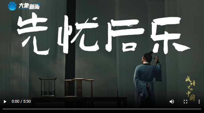 《文脈華章|成語里的中國:先憂后樂》詳細(xì)解讀“先天下之憂而憂,后天下之樂而樂”的淵源、內(nèi)涵、時代意義,我們一起感悟總書記反復(fù)強(qiáng)調(diào)這句話的深意。