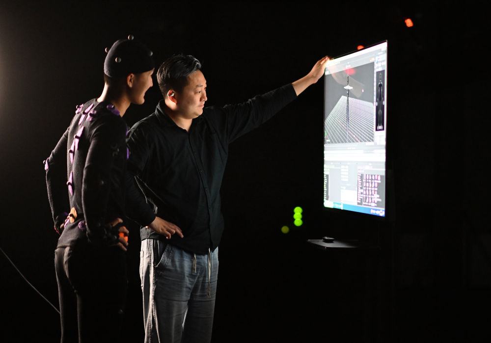 2024年4月23日,在位于天津市濱海新區(qū)國(guó)家動(dòng)漫園里的大型動(dòng)作捕捉棚內(nèi),技術(shù)顧問崔盛輯(右)和動(dòng)捕演員馬鑫琪查看電腦生成的虛擬角色動(dòng)作。人社部近年公布的新職業(yè)中,數(shù)字孿生應(yīng)用技術(shù)員名列其中。崔盛輯正是一名數(shù)字孿生應(yīng)用技術(shù)員。他從事數(shù)字技術(shù)相關(guān)工作多年,如今已成立了工作室,主要通過數(shù)字孿生技術(shù)搭建在影視動(dòng)畫、沉浸式文旅、生命科學(xué)等領(lǐng)域的應(yīng)用場(chǎng)景。