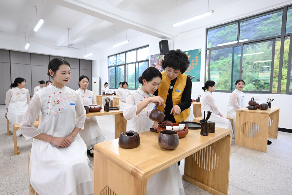 2025年5月8日,福建省武夷山旅游職業(yè)中專學(xué)校的茶藝?yán)蠋熢诮淌诓杷嚒=陙?,武夷山市依托?dāng)?shù)夭璁a(chǎn)業(yè)優(yōu)勢(shì),持續(xù)推進(jìn)茶文化、茶技能教育走進(jìn)校園,在當(dāng)?shù)芈殬I(yè)學(xué)校重點(diǎn)開設(shè)了茶藝、茶葉加工、茶營(yíng)銷等專業(yè),為當(dāng)?shù)夭璁a(chǎn)業(yè)發(fā)展、茶文化傳播培養(yǎng)職業(yè)技能人才。