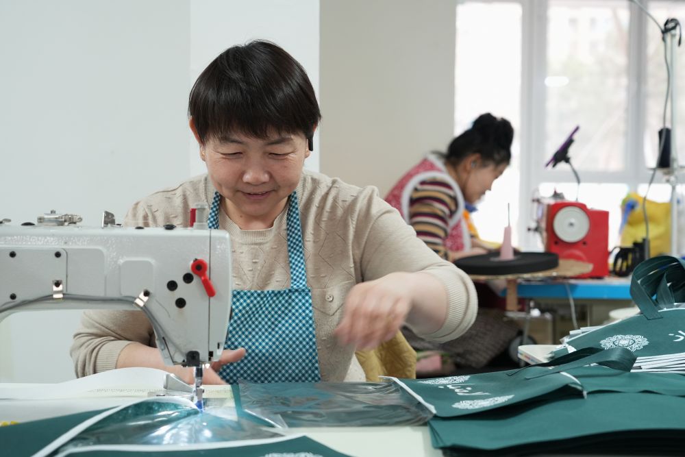 2025年3月27日,回遷居民在雄安新區(qū)“雄業(yè)創(chuàng)工坊”包裝工坊加工無紡布。工坊引入有持續(xù)發(fā)展?jié)摿?、?duì)社區(qū)環(huán)境影響較小的產(chǎn)業(yè),為回遷群眾提供靈活多樣的就業(yè)崗位,讓回遷居民實(shí)現(xiàn)“上樓安家,下樓就業(yè)”。