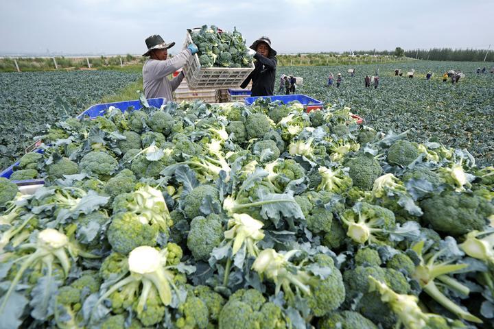 2025年7月18日,工作人員在寧夏固原市原州區(qū)彭堡鎮(zhèn)萬(wàn)畝冷涼蔬菜基地運(yùn)輸西蘭花。固原依托高海拔、氣候冷涼等“冷資源”優(yōu)勢(shì),大力發(fā)展冷涼蔬菜產(chǎn)業(yè),著力打造“六盤(pán)山冷涼蔬菜”區(qū)域公用品牌。目前已建成冷涼蔬菜規(guī)模化種植基地130余個(gè),種植面積穩(wěn)定在50萬(wàn)畝,年產(chǎn)鮮菜200萬(wàn)噸以上?!傲P(pán)山冷涼蔬菜”這張打造的“綠色名片”,已成為當(dāng)?shù)剜l(xiāng)村振興發(fā)展之路上的“熱產(chǎn)業(yè)”