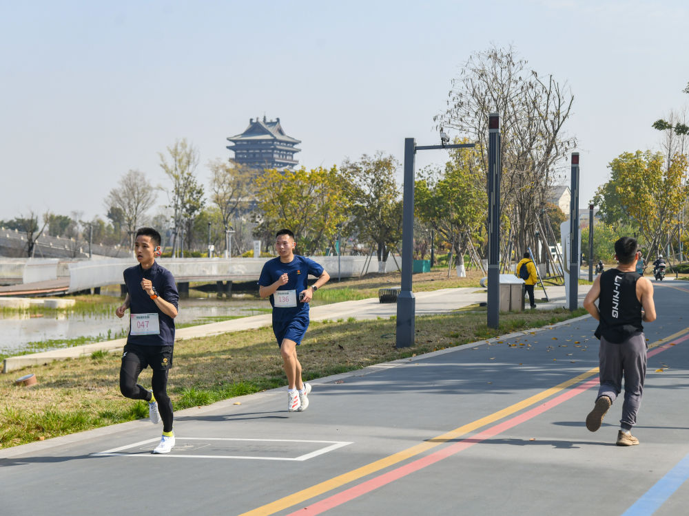 2025年3月23日,市民在四川成都參加5000米東安湖環(huán)湖歡樂跑活動。
