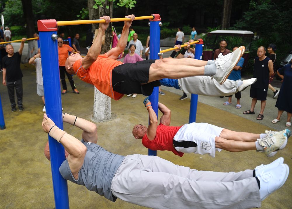 2024年6月18日,健身愛好者在四川成都新華公園內(nèi)鍛煉。