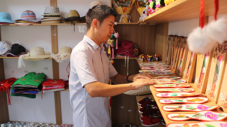 從外地返鄉(xiāng)的“90后”扶銀廷和妻子,在田鋪大塆創(chuàng)辦了一家“文創(chuàng)工坊”?!跋裥瑝|、虎頭枕、虎頭帽這些手工制品,都是我們當(dāng)?shù)匾恍├先?、大姐手工做的。這些特色的文創(chuàng)產(chǎn)品既能讓游客了解當(dāng)?shù)乇就廖幕?,又增加了村民收入。”扶銀廷說。