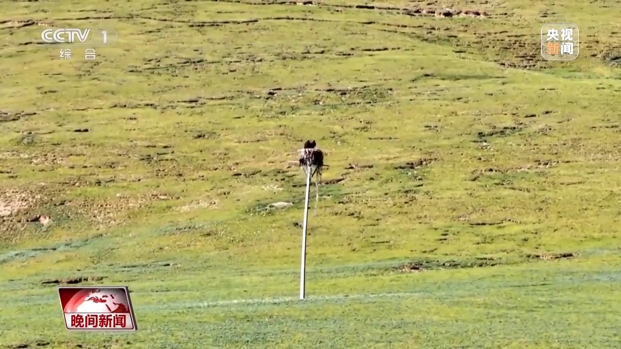 現(xiàn)在的三江源草原上,每隔一段距離就會有這樣一根孤零零的水泥桿。它有一個非常形象的名字,叫招鷹滅鼠架,老鷹在觀察臺上觀察目標(biāo),瞄準(zhǔn)沖擊。這也是三江源國家公園保護(hù)草場,防治鼠害的一項(xiàng)有力措施。