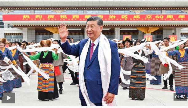 中共中央總書記、國家主席、中央軍委主席習(xí)近平率中央代表團(tuán)20日中午乘專機(jī)抵達(dá)拉薩,出席西藏自治區(qū)成立60周年慶?;顒?。習(xí)近平等在機(jī)場和拉薩市區(qū)受到西藏各族群眾的熱烈歡迎。中共中央政治局常委、全國政協(xié)主席、中央代表團(tuán)團(tuán)長王滬寧,中共中央政治局常委、中央辦公廳主任蔡奇等同機(jī)抵達(dá)。