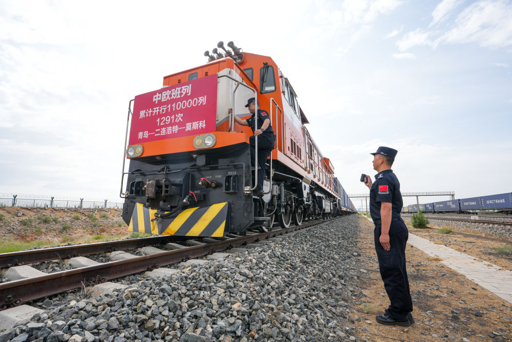 6月10日,我國第11萬列中歐班列從中國-上海合作組織地方經(jīng)貿(mào)合作示范區(qū)多式聯(lián)運中心發(fā)出,滿載1萬余臺山東本地制造的智能家電,貨值超2000萬元人民幣,經(jīng)內(nèi)蒙古二連浩特口岸出境,駛向俄羅斯首都莫斯科。