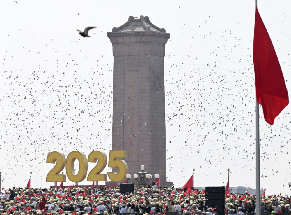 9月3日,現(xiàn)場放飛和平鴿。新華社記者 肖藝九 攝