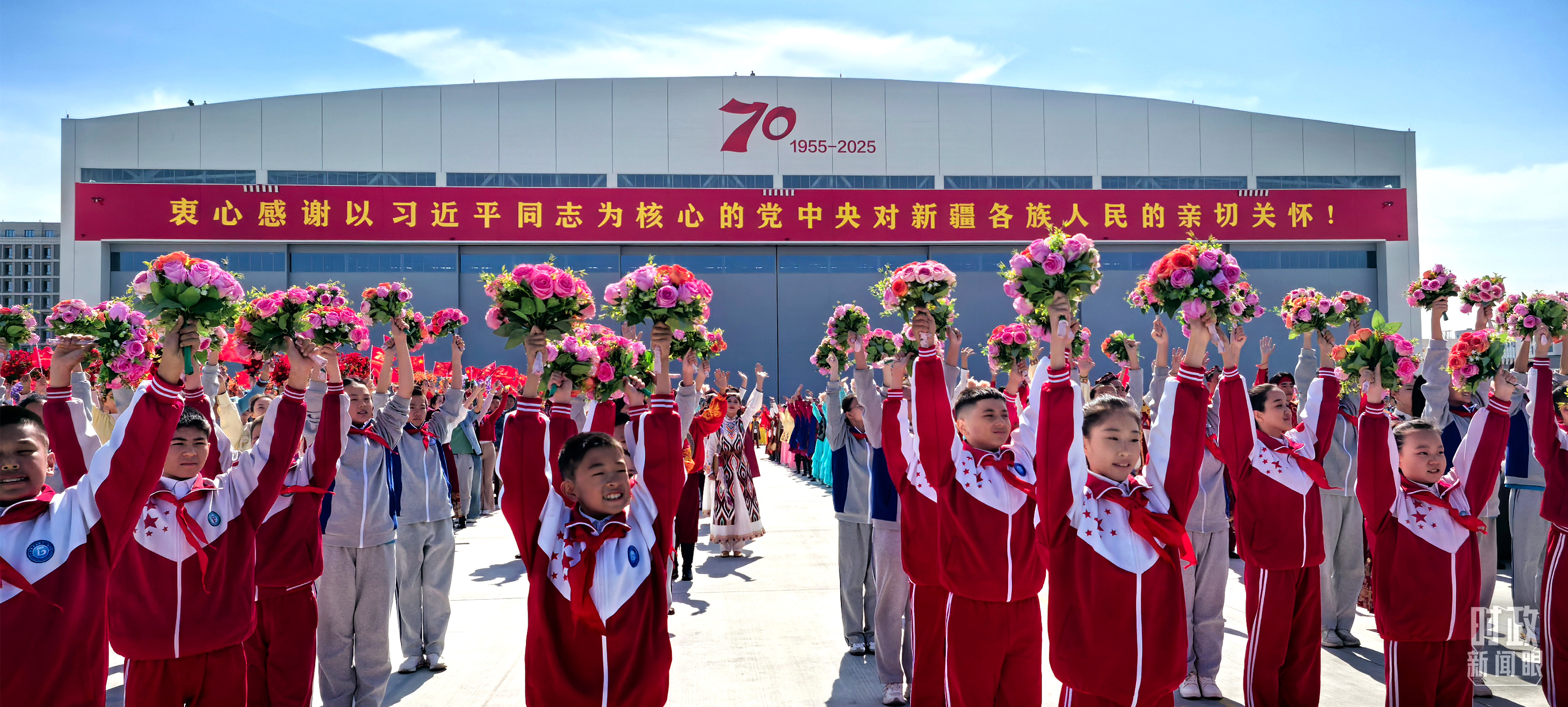 金秋時節(jié),晴空萬里。新疆各族群眾熱情迎接習近平總書記和中央代表團的到來。
