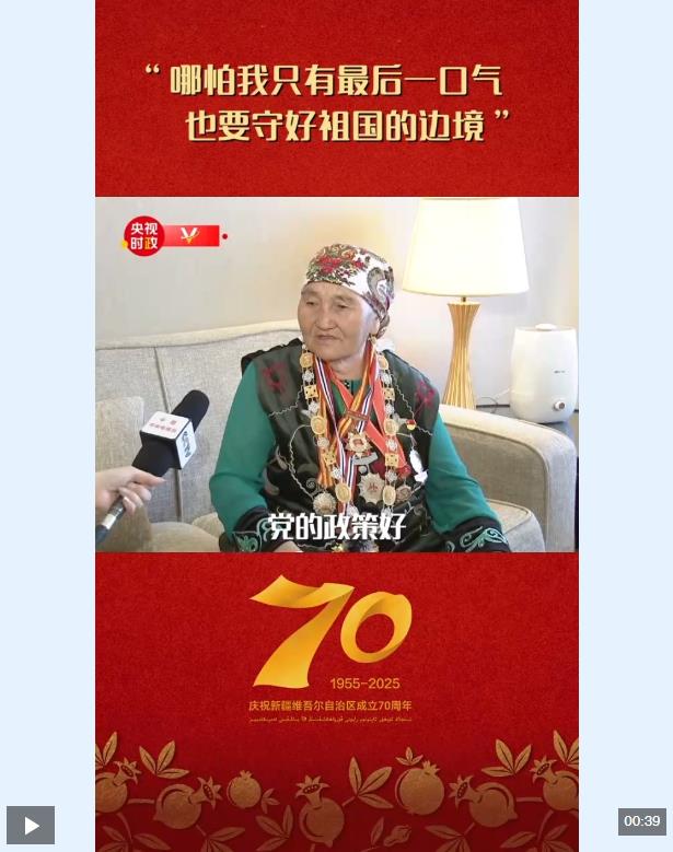 “人民楷?!眹?guó)家榮譽(yù)稱號(hào)獲得者布茹瑪汗·毛勒朵表達(dá)了她最想對(duì)總書(shū)記說(shuō)的話:“我從19歲開(kāi)始守邊護(hù)邊,哪怕我只有最后一口氣,也要守好祖國(guó)的邊境。”