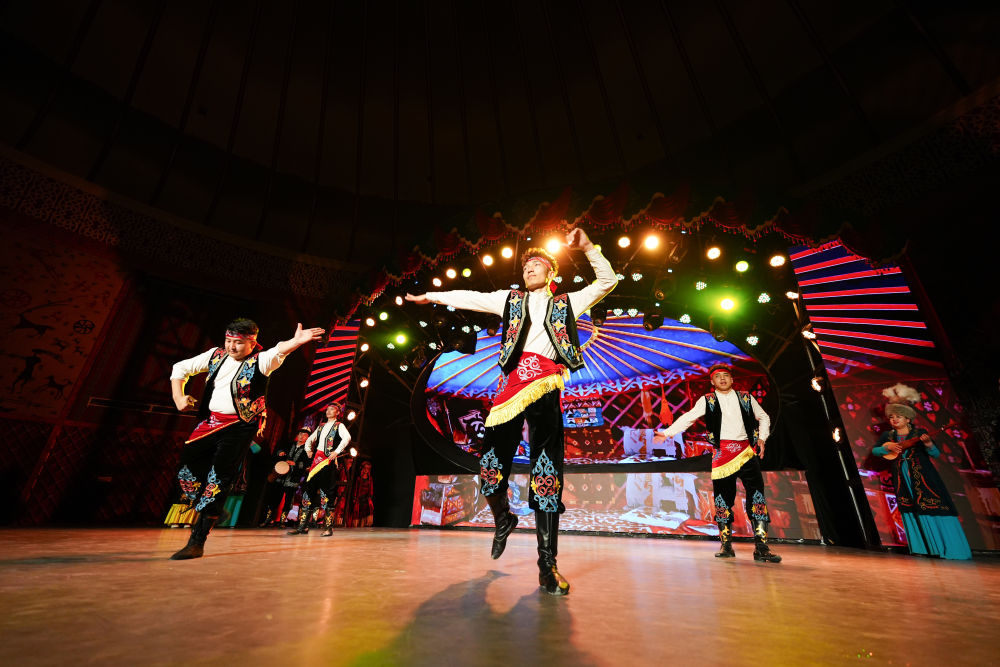 2025年5月1日,《新疆維吾爾自治區(qū)瑪納斯非物質(zhì)文化遺產(chǎn)保護條例》正式實施,為保護這部列入聯(lián)合國教科文組織非遺名錄的柯爾克孜族英雄史詩提供了法規(guī)遵循。這是2025年4月22日,演員在位于新疆阿圖什市的瑪納斯史詩大劇院為游客表演。