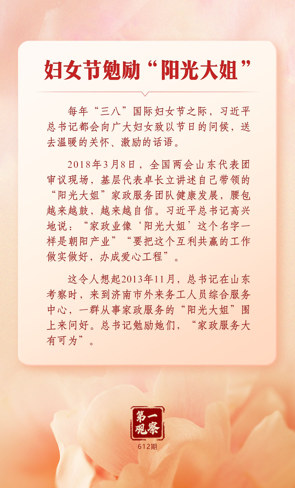 習(xí)近平總書記始終心系婦女事業(yè)發(fā)展。在全球婦女峰會即將召開之際,讓我們一道深刻體悟這份一以貫之的牽掛與重視。